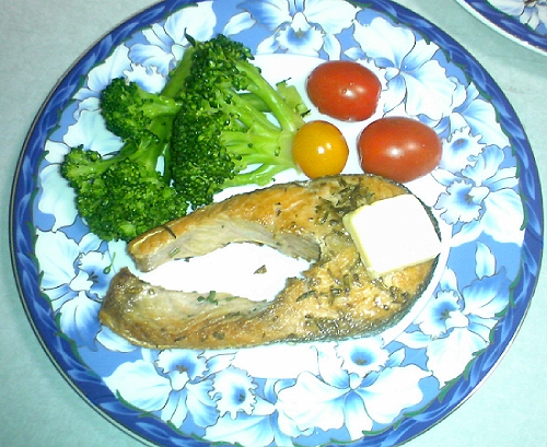 釣った鮭は、ローズマリーソルトとバターで頂きました