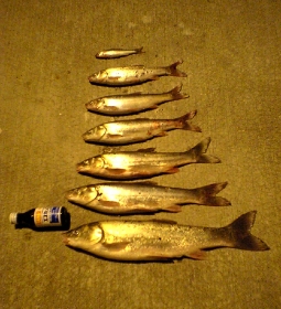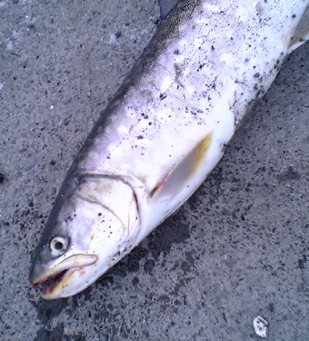 しっかし類い稀なる大漁だなぁ…何年ぶりだろう?(年単位) 石狩の某川にて釣り上げたウグイ 釣果はウグイ三匹…本当はカレイ狙いでした 結構大きかった 煮てよし、焼いてよし、リリースもよし
